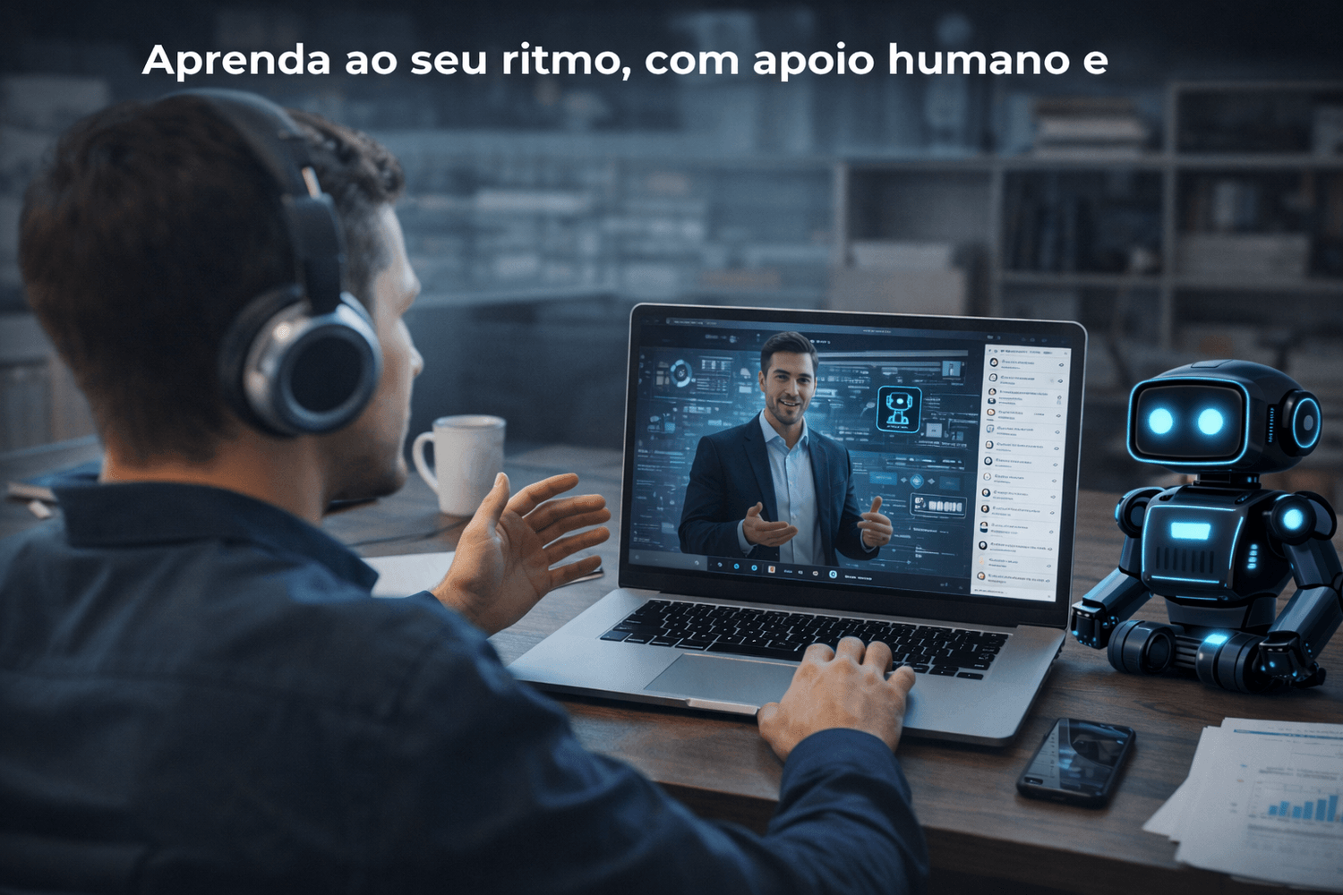Enquanto aprende, conta ainda com o apoio da Automação, da Inteligência Artificial e dos Funcionários Robôs, que ajudam a organizar processos, responder a leads e manter o foco no essencial.